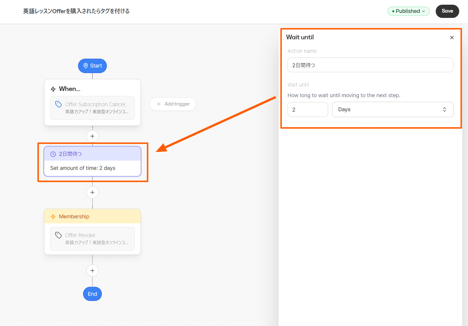 今まではEmail Sequence を使って、疑似的に「数日後に○○をする」というようなオートメーションを組む必要がありましたが、その必要がなくなりました!