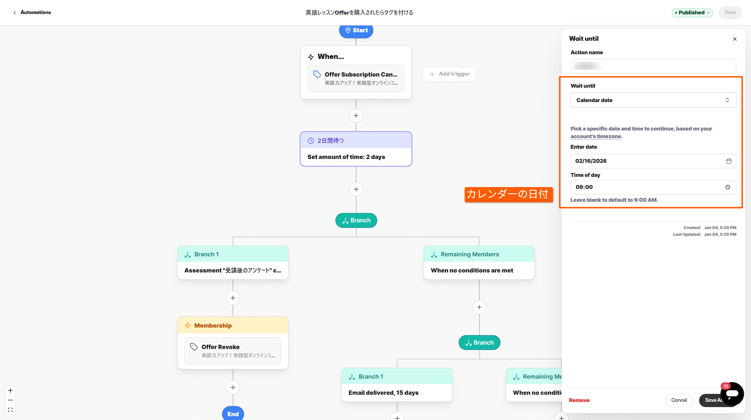 今までは「購入日から○日後」というような起点ベースのDripでしたが、新しいアップデートによって「○月○日から」のように設定できるようになりました