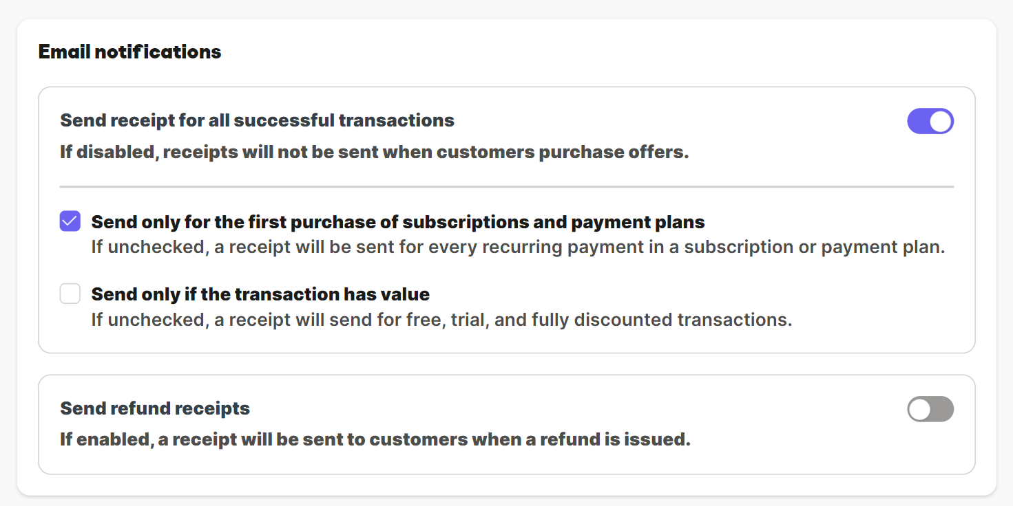 - 無料商品では領収書を送らない設定も可能