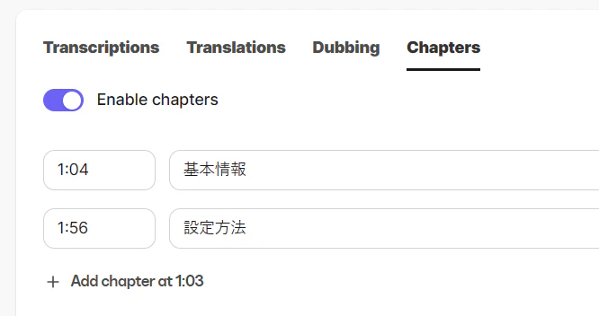 以下のように、動画の再生バーにマークを表示したり、オプションからチャプター一覧を確認できるようになりました!