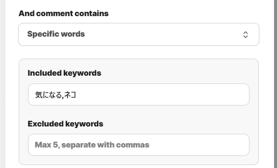 - Specific words : 特定のキーワードが含まれているコメントを対象にする