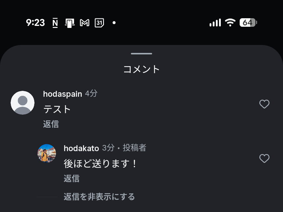 コメントで返信する設定
